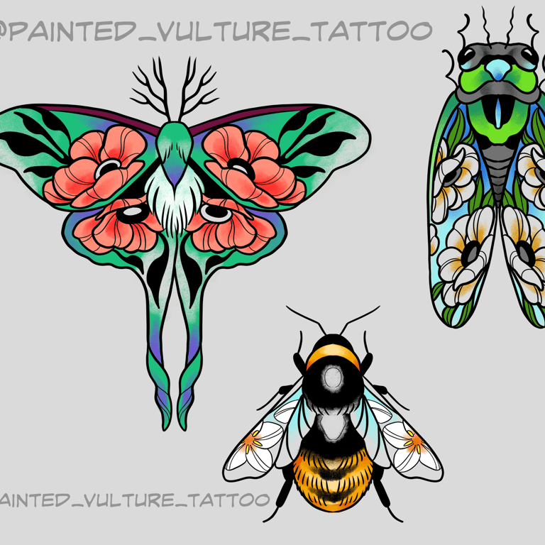 Contact me through instagram DMs, @painted_vulture_tattoo